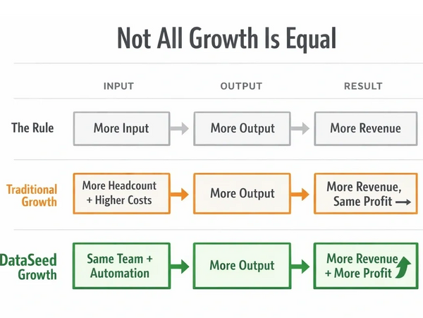 Scaling a business is a structural challenge, not just a sales challenge. At DataSeed, we provide the data infrastructure that allows your existing team to deliver 10x the output without the 10x headcount risk.
